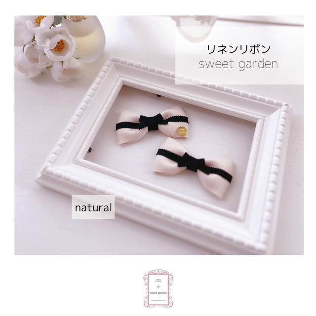 ナチュラルなリネン素材と6mm幅の木馬リボンで作られた可愛らしいリボンです。 ヘアアクセサリーやバッグ飾りに最適。 リネンリボンは、ナチュラルで上品な風合いが、どんなコーディネートにも馴染みます。 髪をアレンジしてフェミニンな印象を演出するのに最適です。 リネンリボンで春夏のオシャレを楽しんでいただけると嬉しいです(*^-^*) ◇こちらはミニサイズになります。 お揃いのご用意もございます - リネンリボン-の商品をご覧くださいませ 横幅 約7.5cm×縦幅 約4cm バレッタ・クリップ・ゴム仕様とお選び頂き 備考欄にご記入くださいませ。