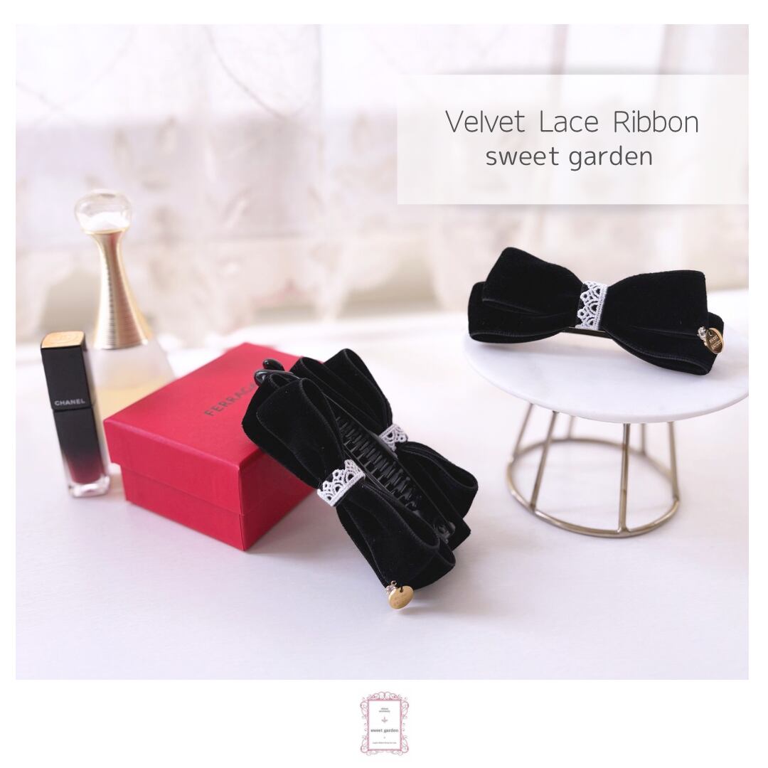※繊細な作りとなっておりますので、お取り扱いにはご注意ください。今すぐこのベルベットレースリボンをあなたのヘアスタイルに加えて、素敵な印象を楽しんでみてくださいね^^