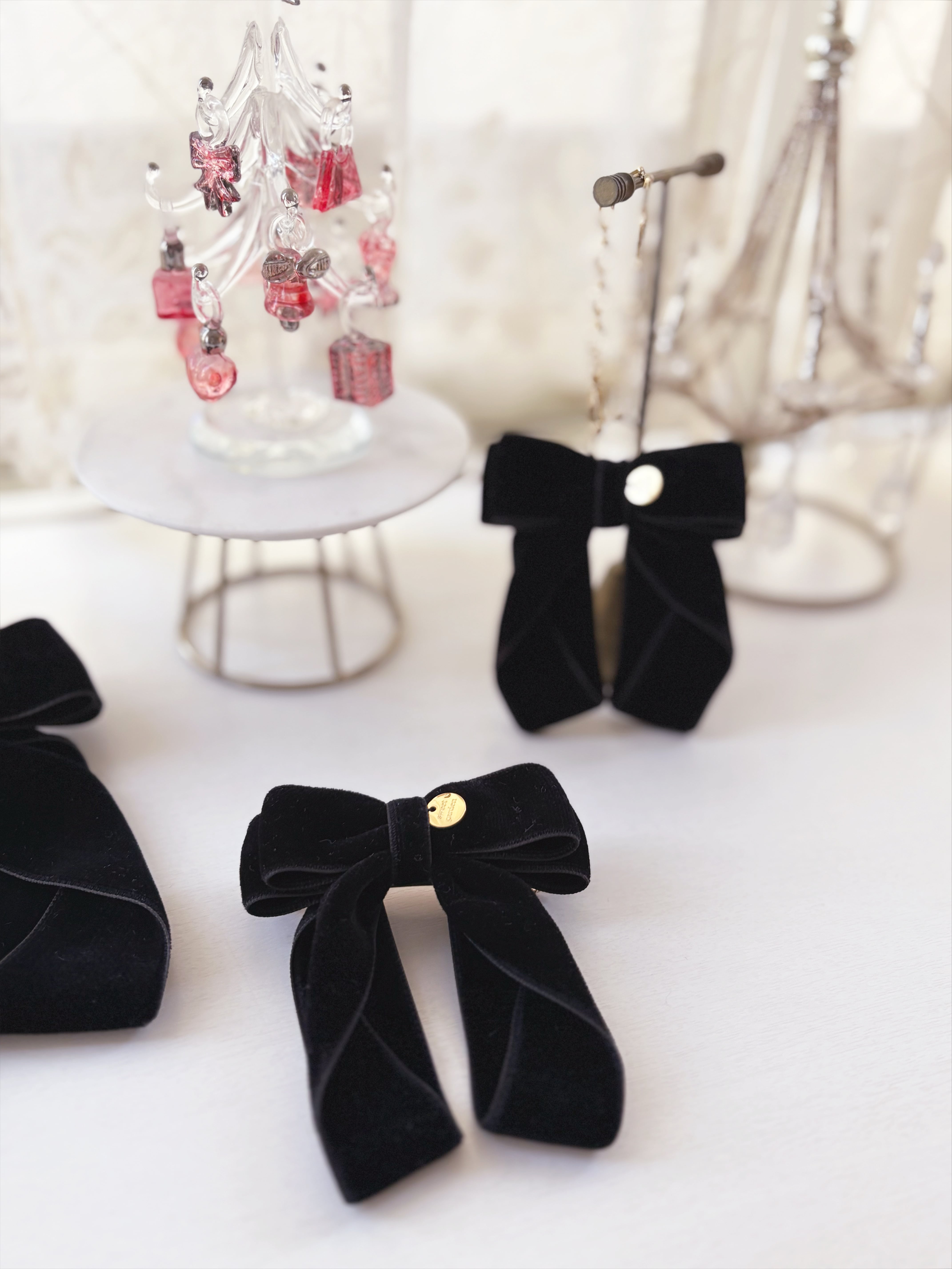 日本製の上質なベルベット素材に、くるりんと可愛らしいリボン足が' ゆらり♡ '