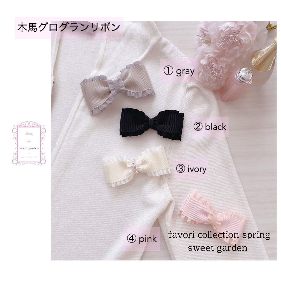 上質な木馬グログランリボン、木馬サテンリボンでお作りした繊細なフリルがポイントのリボンヘアアクセサリーです。